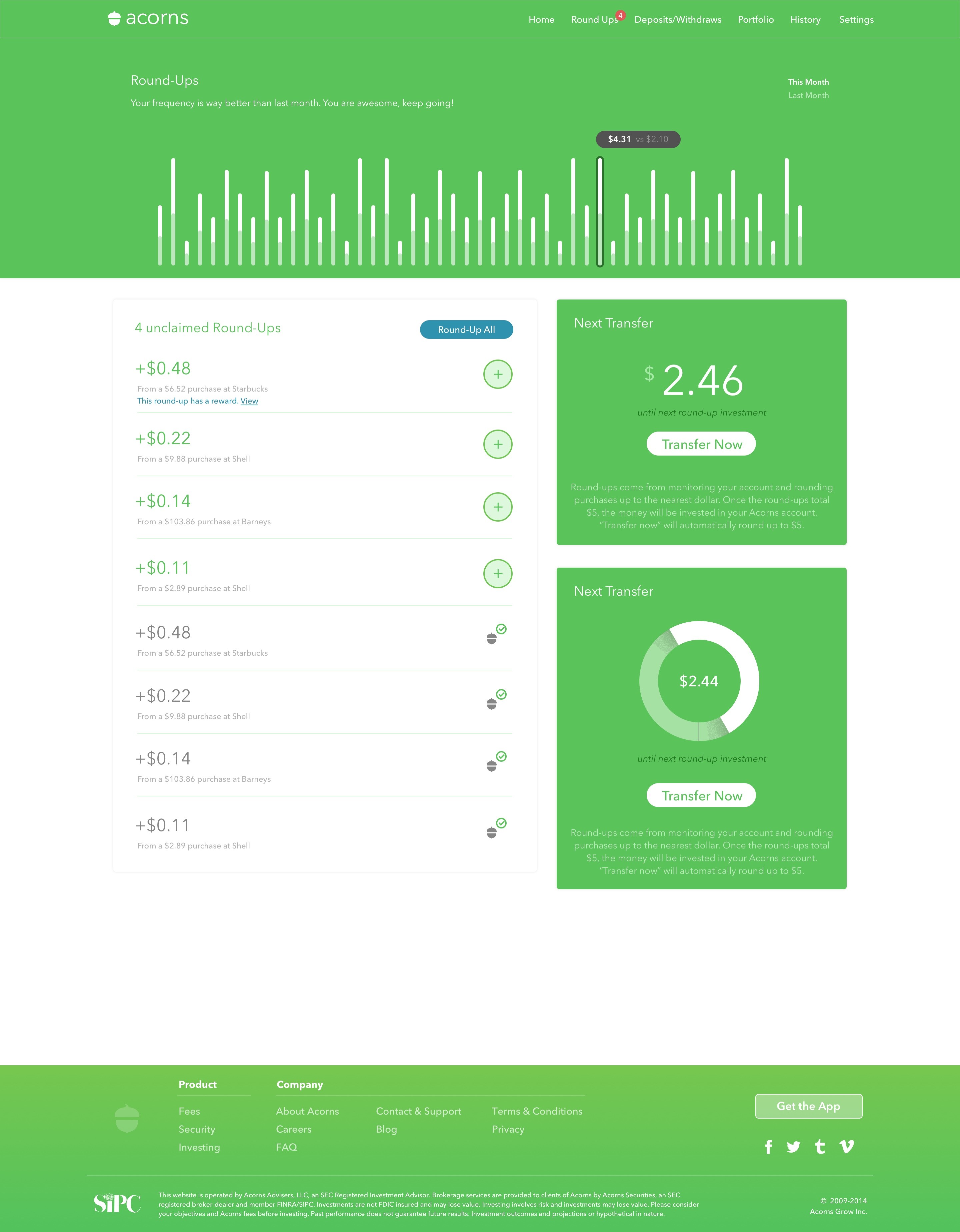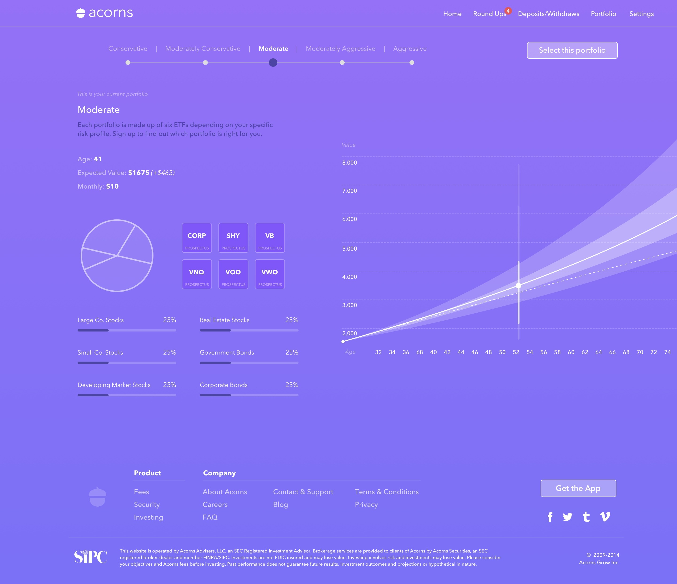 Acorns, for quite a while, had only a single page promo site to guide people to get the app from the app stores. They were developing the architecture for the first web app and wanted to create a more comprehensive presence for Acorns on the web. I borrowed some visuals from the app to create cohesion as well as created some new elements to make the website look polished and visually aligned to the amazing app they already had.