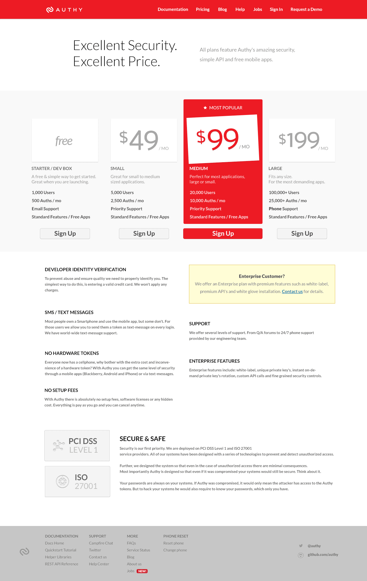 One of the deeper dives I did on the Authy website was on the pricing page. I did dozens of designs to land on this and it converted extremely well for years.